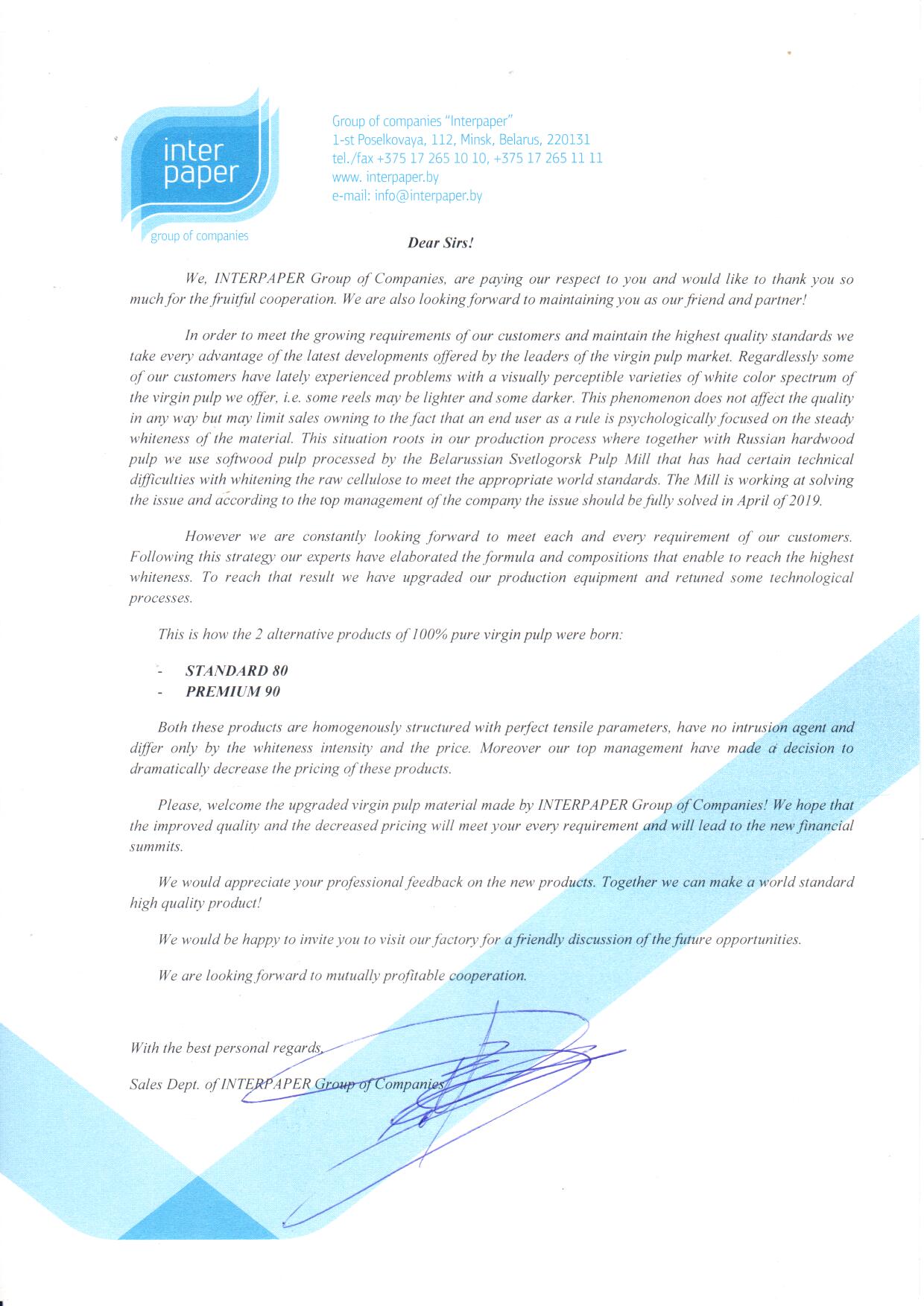 We are ready to introduce 2 alternate products made of 100% virgin pulp :